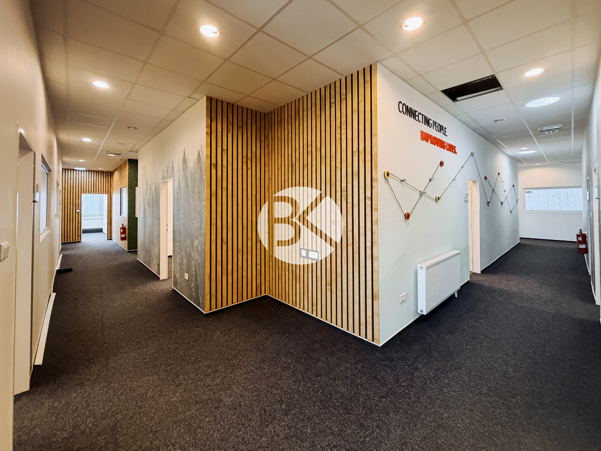 Svetlá výška kancelárskych priestorov je približne 3 m, čo umožňuje flexibilné usporiadanie pracovných priestorov.