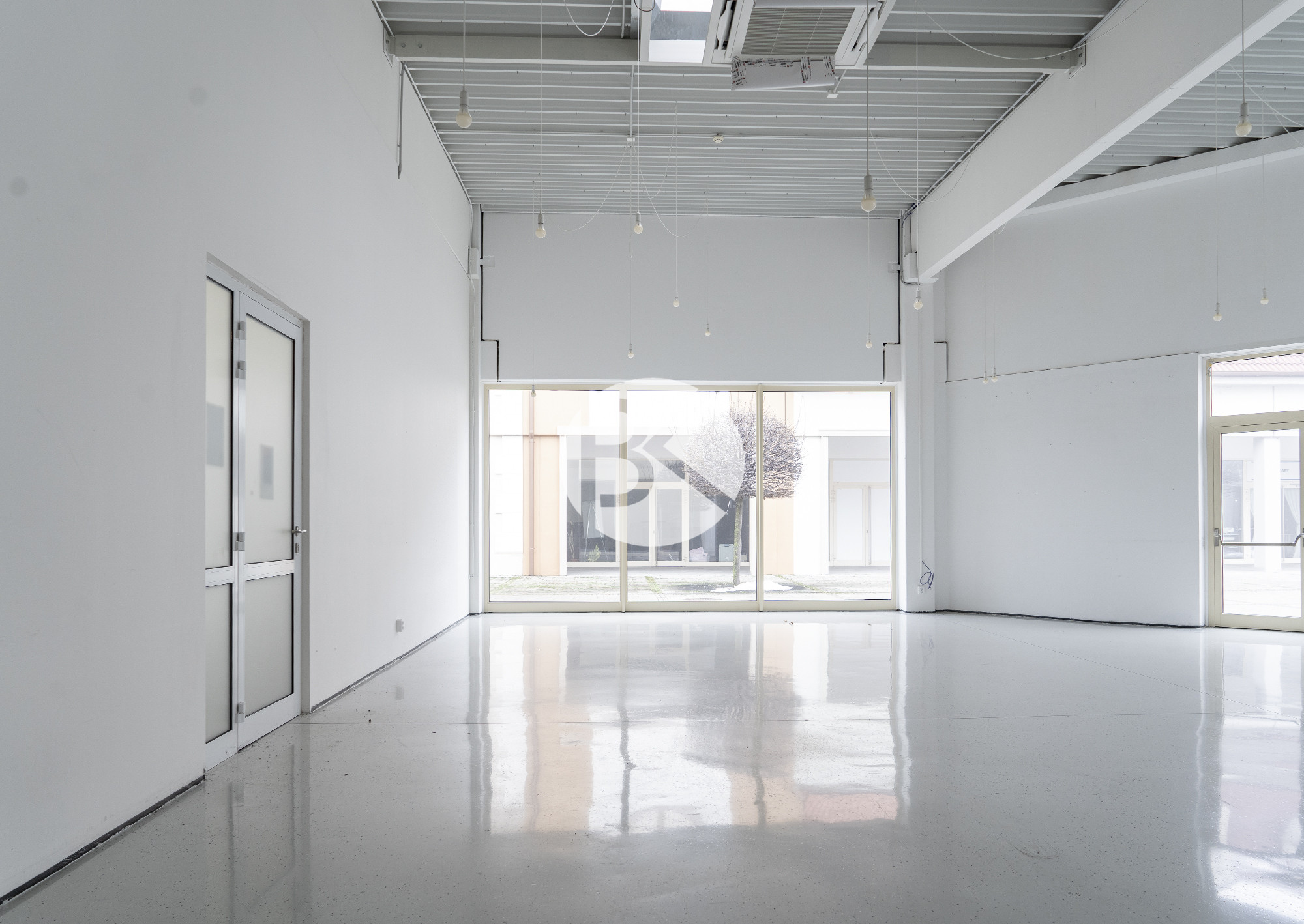 Jednotka disponuje svetlou výškou 5 m a je vybavená kvalitnou epoxidovou podlahou s protišmykovou a chemickou odolnosťou. Dispozícia zahŕňa sadrokartónové priečky, ktoré umožňujú efektívne rozdelenie priestoru na pracovné a prezentačné zóny.